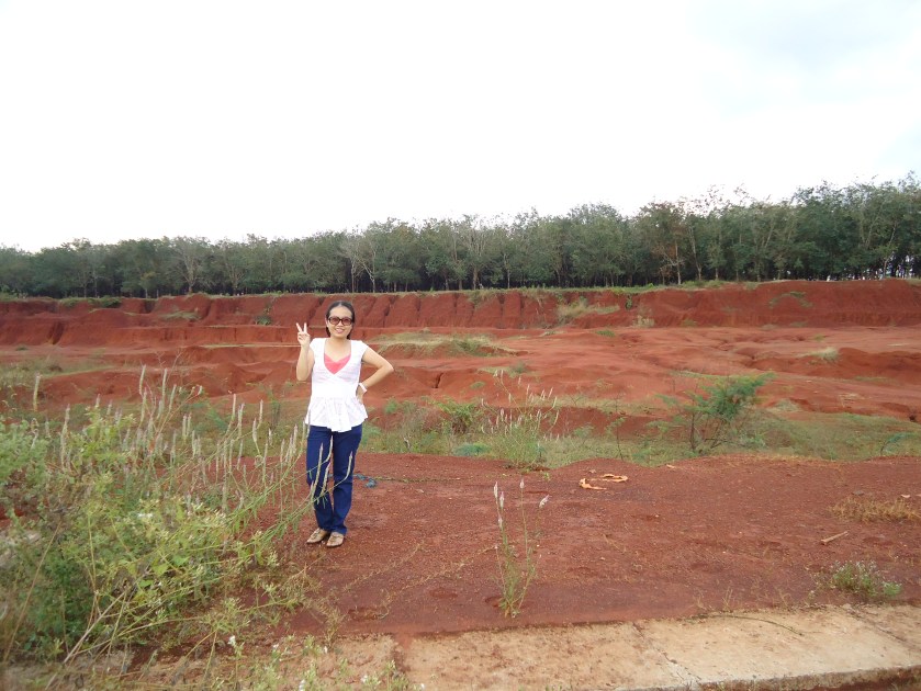 Nói chung thì, mùa này lẽ ra là mùa khô, tức là đất đỏ óng ánh vẫn còn đẹp lắm! Nhưng chẳng hiểu thế nào, mình vừa xách hành lý về đến nơi thì trời lại hào phóng xả cho một trận mưa thâu đêm suốt sáng! Và tình hình là bạn biết rồi đấy, mình được dịp cao thêm vài cm như đã từng mong ước nhưng phải trả giá bằng cả buổi ngồi cọ dép!!!