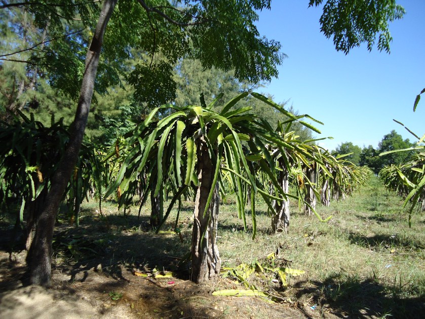 Con đường quốc lộ về chiều đã bớt oi bức. Nắng vàng không còn hối hả, những cụm mây sẫm màu lại thi nhau kéo về, báo hiệu sắp có một cơn mưa hờ hững, hiếm hoi trên xứ sở đặc trưng nắng và gió này. Chiếc xe cứ thế lao vùn vụt, khung cảnh đồng lúa duyên hải xanh ngát một màu trên nền núi đồi đỉnh ngập mây mù lần lượt kéo lùi qua ô cửa kính. Càng đi, những vườn cây thanh long càng dày đặc, xen lẫn giữa những mảnh ruộng, có khi, cả một triền đất rộng chi chít toàn những trụ xi măng nhỏ làm giá đỡ cho loài cây tua tủa lá dài, vốn rất thích hợp với loại khí hậu khô cằn.