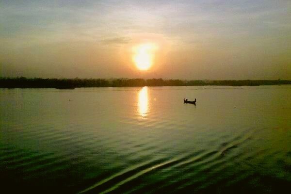 Quả nhiên, con sông Bạch Đằng nhuộm màu bạc thếch buổi chiều cuối thu năm ngoái, giờ vô cùng tráng lệ dưới bầu trời hừng đông rực rỡ huy hoàng. Không còn là những con sóng bạc trắng lăn tăn, không còn là những dải rừng xanh nhạt nhòa trong từng sợi gió cuối thu năm trước; giờ đây trước mắt Ngô Bình là một khung cảnh tràn trề sức sống, màu vàng trong trẻo của nắng sớm, màu biếc xanh của dãy rừng ôm trọn dòng sông trắng lấp lánh, màu nâu xám của những doi đất thoai thoải đổ xuống sát mép nước, màu lam dịu của nền trời phía Tây, nơi vầng mặt trời vẫn còn núp quá nửa sau rặng cây chưa kịp thả nắng đến, tất cả những sắc màu ấy hòa quyện vào nhau, mặc sức tung tẩy trên bức tranh thiên nhiên hoàn hảo.