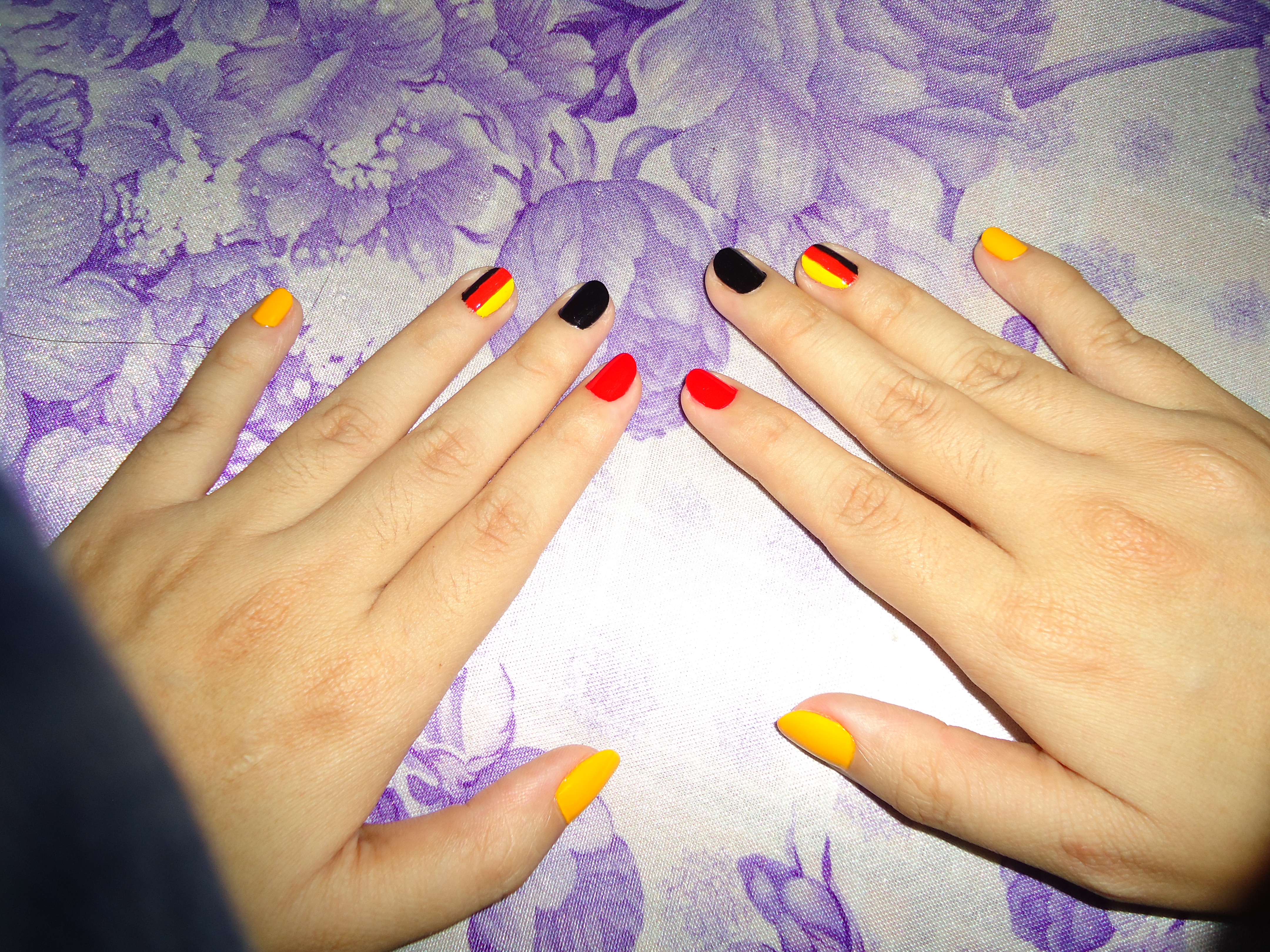 P.S: Còn đây là hình ảnh minh họa cho móng tay mới vẽ trước trận bán kết của tôi, cùng gấu Germie tôi đưa về nhà để không phải xem trận bán kết và chung kết một mình.